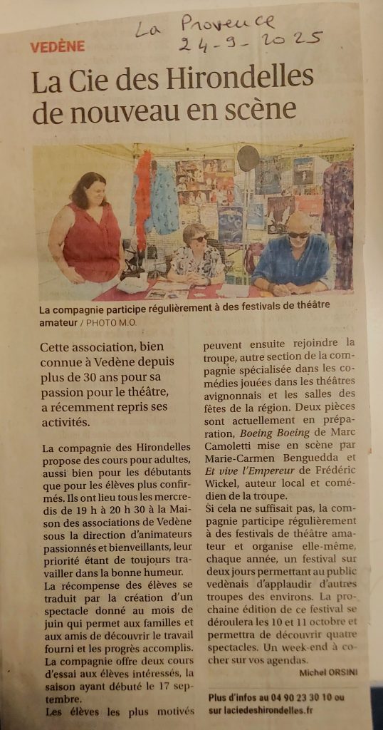 Le programme ci-dessous: RESERVATIONS AU 04 90 23 30 10 ou 06 29 37 74 99